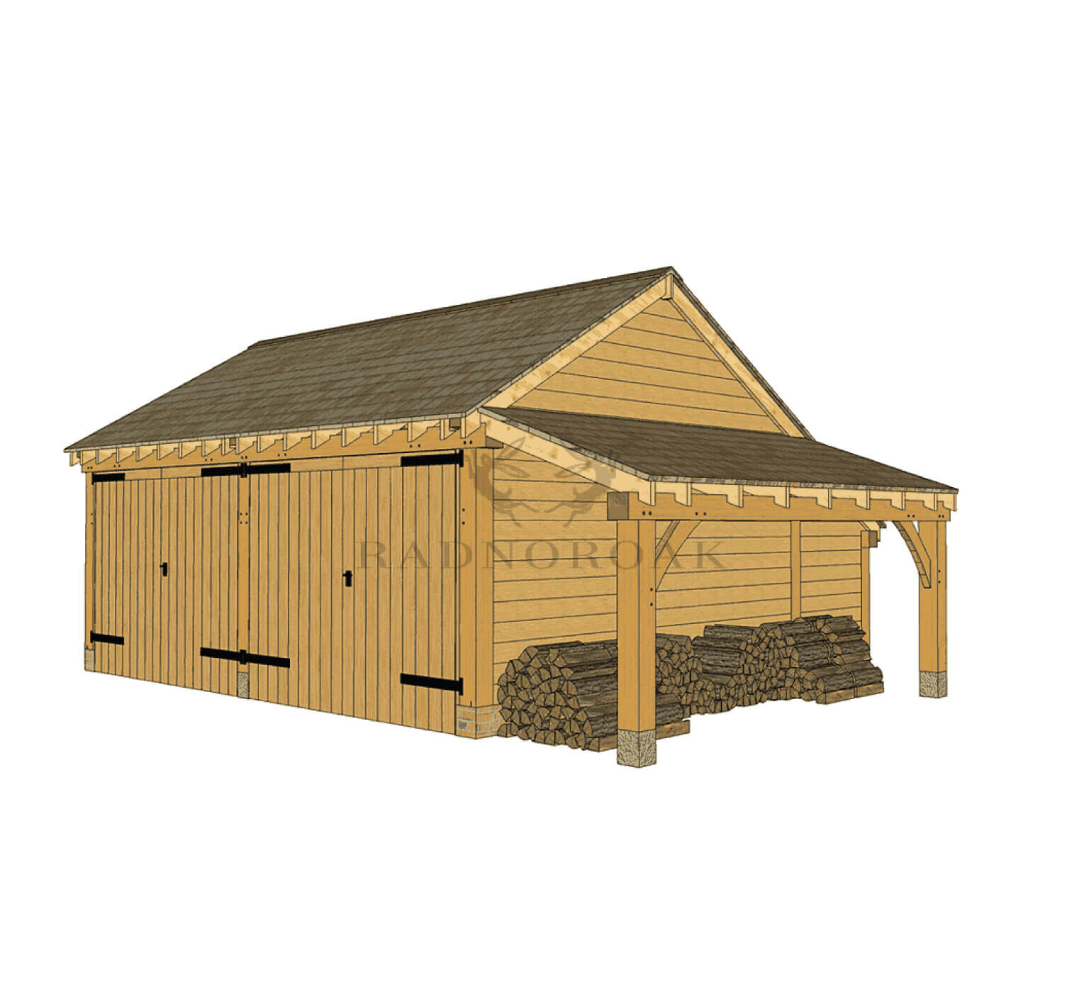 A well-balanced two bay oak garage that combines vehicle security with practical firewood storage in one adaptable design.