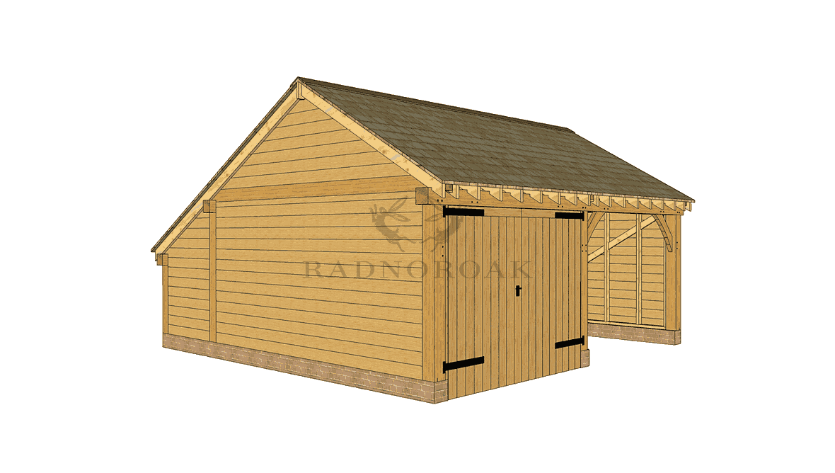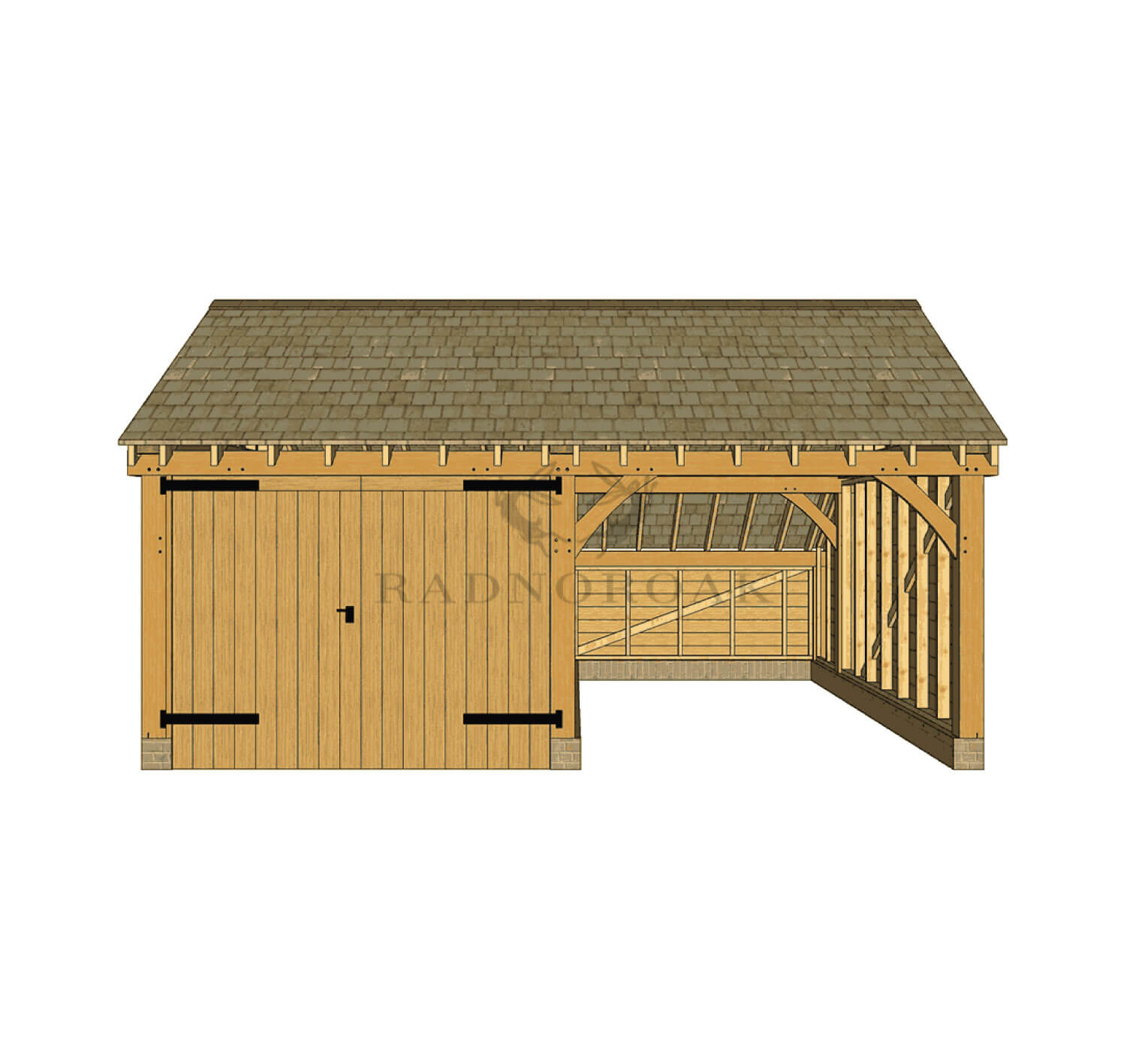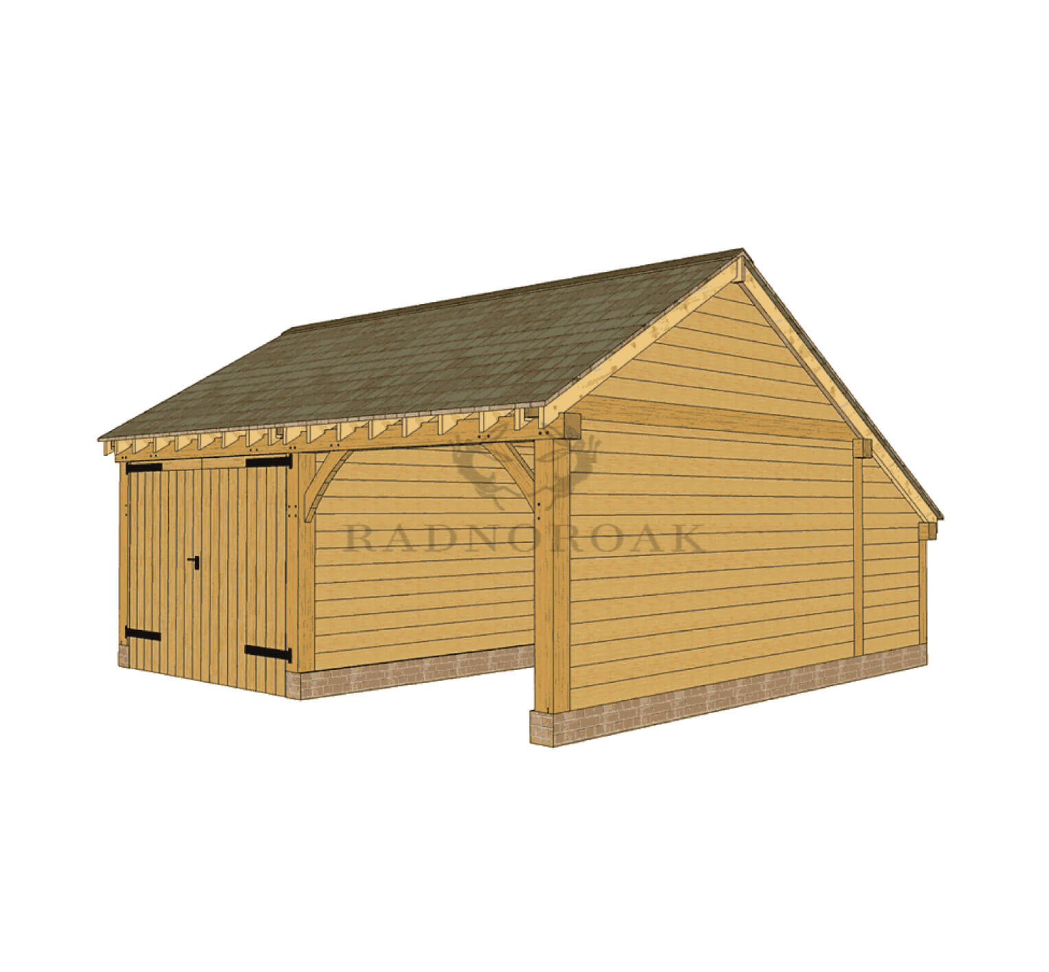 The 2 Bay Oak Garage & Carport - LUC2016 is an excellent example of Radnor Oak's exceptional craftsmanship. With 1 open and 1 enclosed bay with double doors, this versatile structure can easily accommodate your needs. This garage and carport stands under 4m, which means it may not require planning permission. Since 1990, Radnor Oak has been leading the UK market in traditionally jointed oak and timber framed buildings.