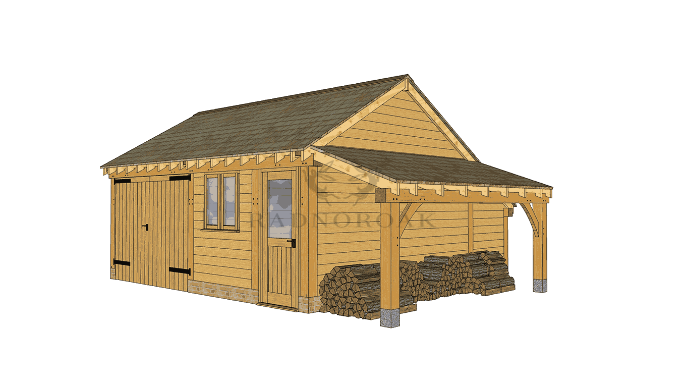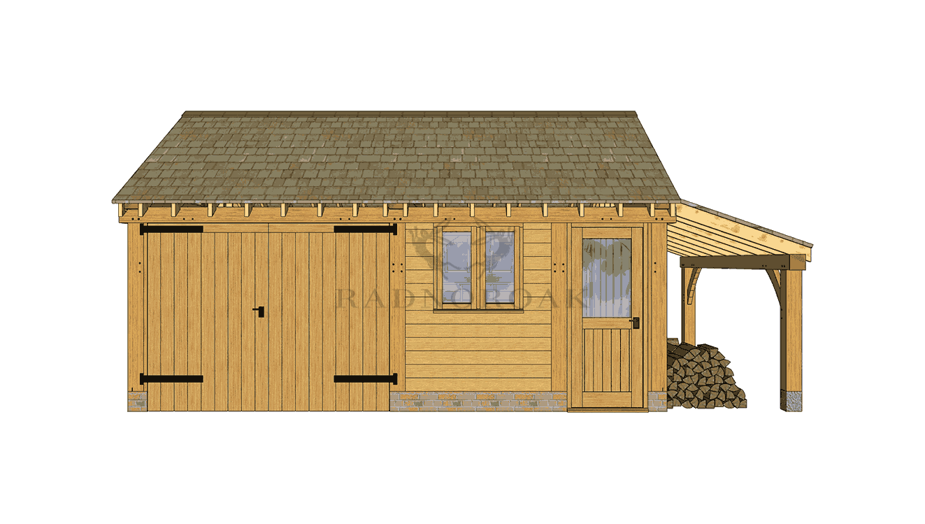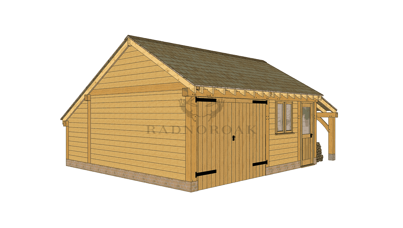 Introducing the LUC2023 2 Bay Oak Garage, Workshop and Log Store from Radnor Oak – the UK’s market leader in traditionally jointed oak and timber framed buildings. Our 2 Bay Oak Garage is fully equipped with double doors, an enclosed workshop, and a log store that can be located on either side of the building. With a height of less than 4m, it may not require planning permission for installation.
