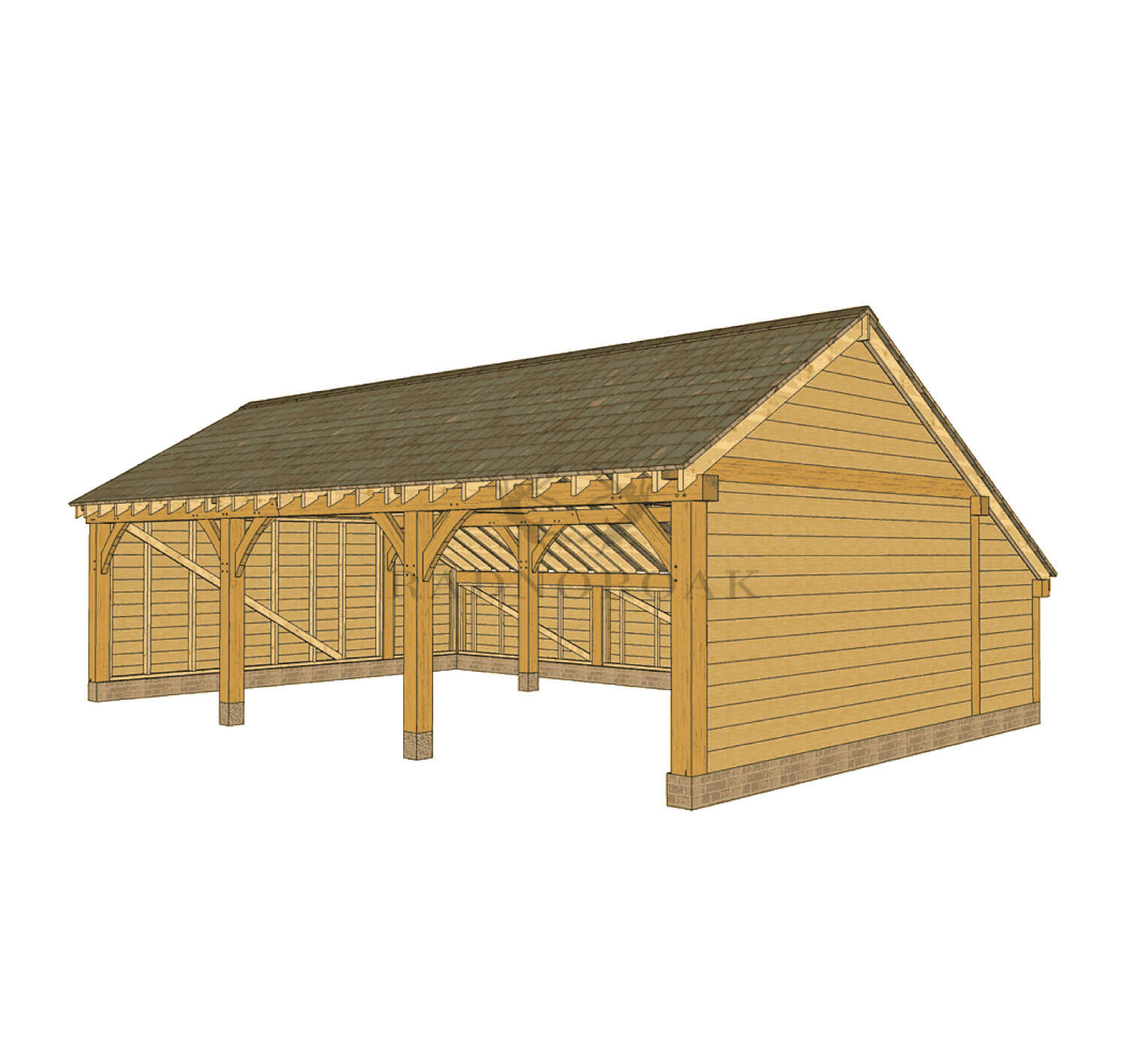 The LUC3001 is a three bay oak framed carport with extended rear roofline - open fronted for ease of access, traditionally crafted to offer lasting durability. Designed to sit under 4 metres in height, it may not require planning permission, making it a hassle free project to add to your home.