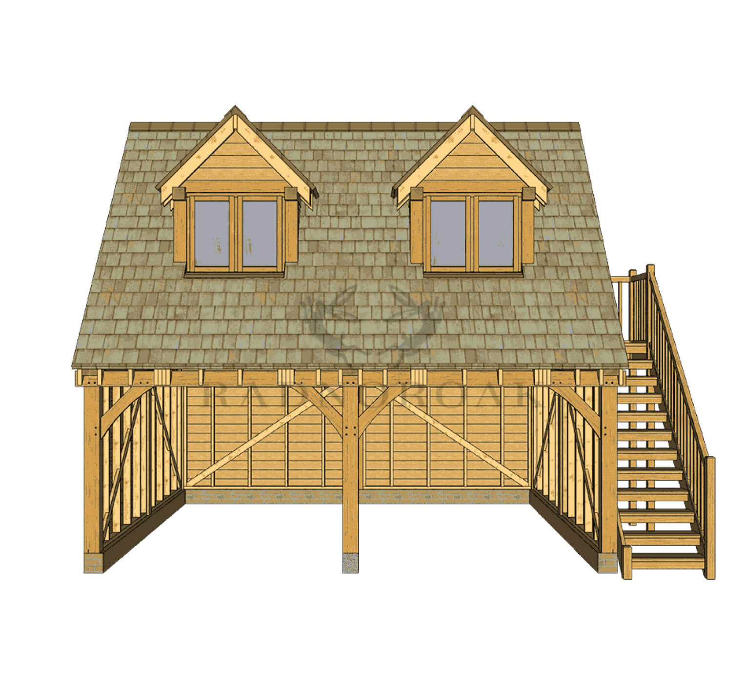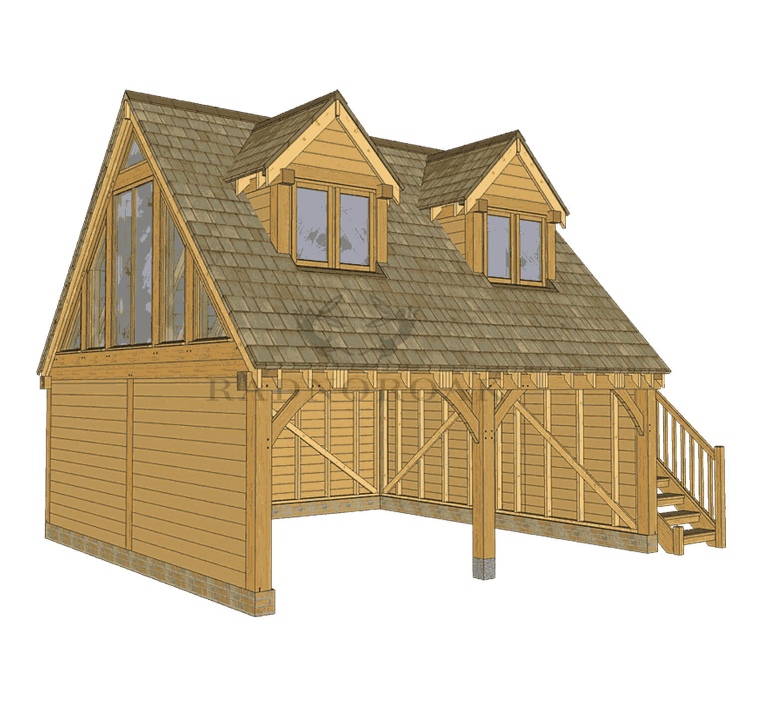 The Norton N2DGF1 is a compact yet impressive 2-bay oak framed garage with a full room above, designed to add both function and character to your property. Ideal for use as a home office, storage space, or guest room, this garage features a pair of oak dormer windows and a glazed gable oak truss, bringing in natural light and enhancing the building's design.