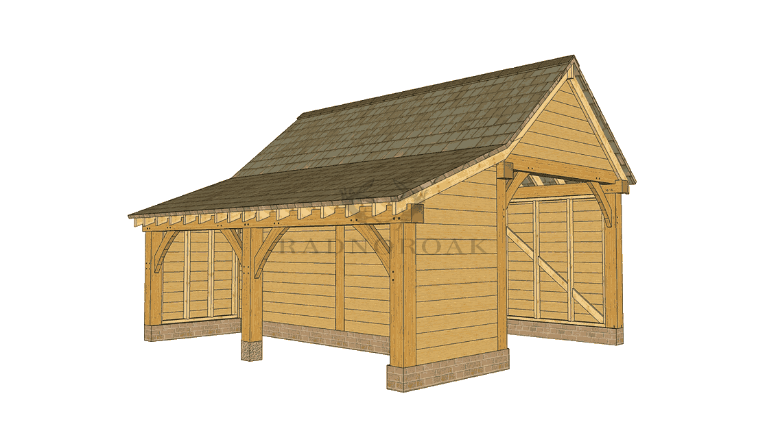 THE STAPLETON: SINGLE BAY OAK CAR PORT & SIDE STORE