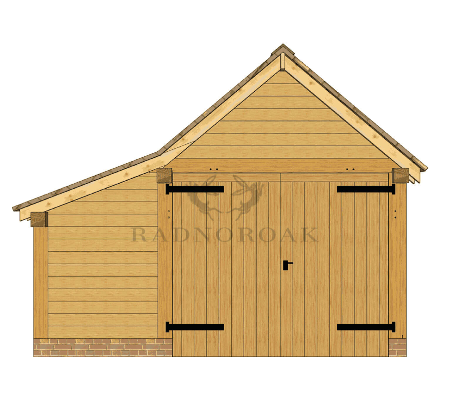 THE STAPLETON: SINGLE BAY OAK GARAGE WITH SIDE STORE & BARN STYLE DOUBLE DOORS.