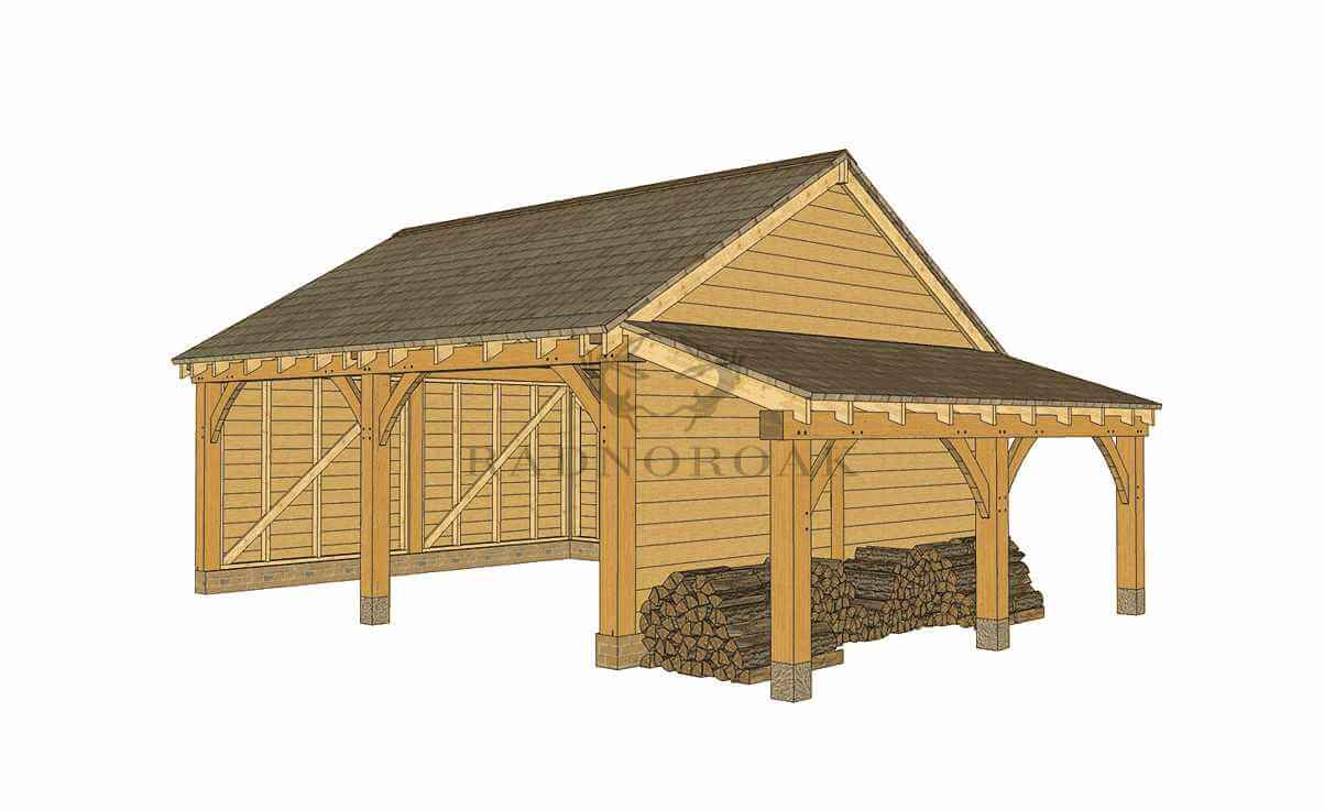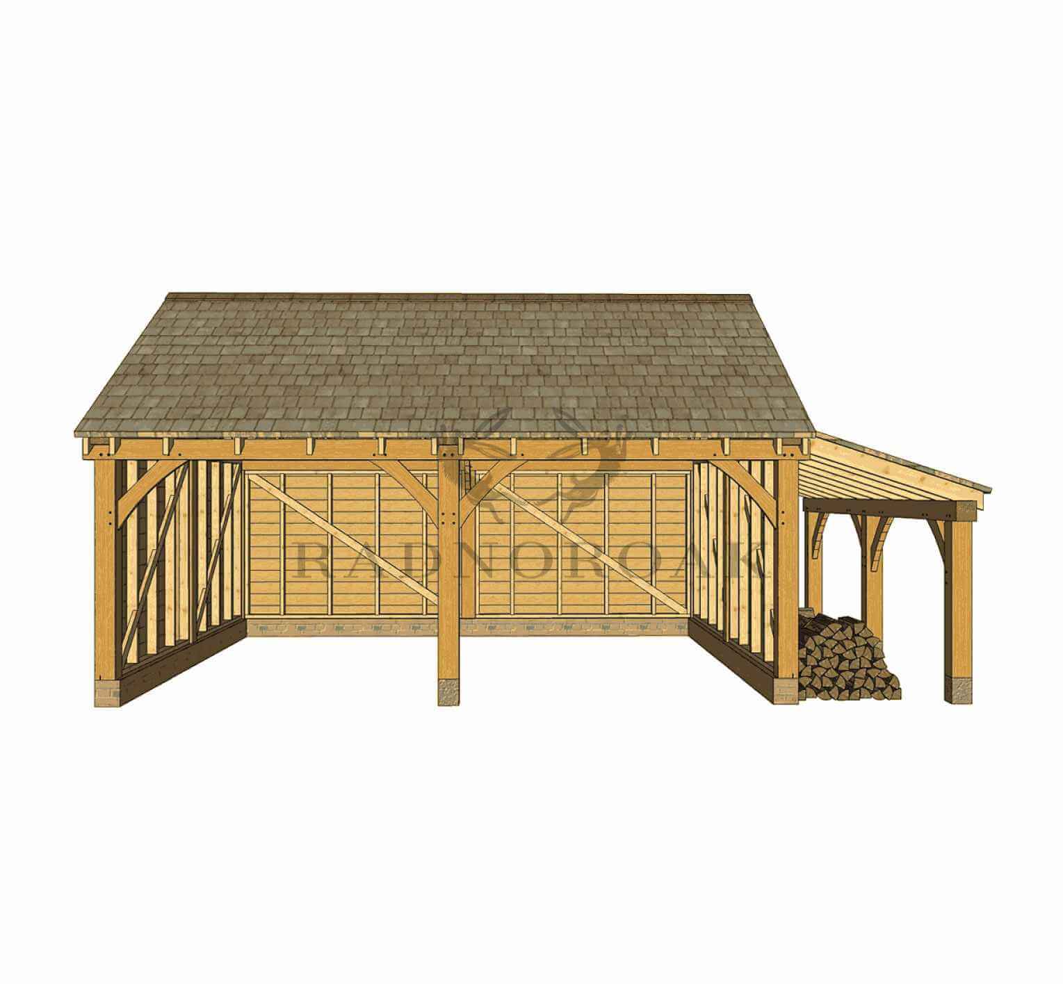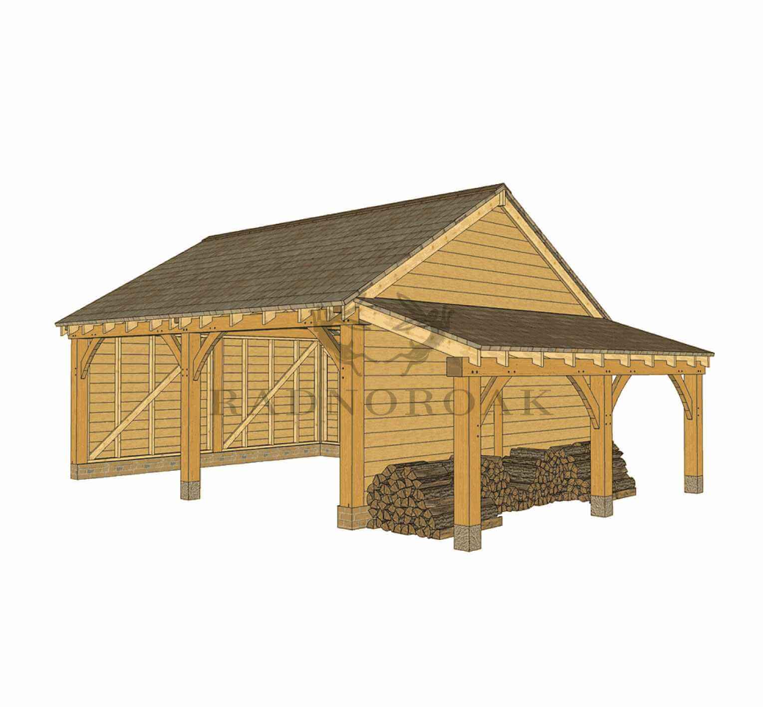 The Walton 2 Bay Oak Carport & Log Store combines sheltered parking with practical firewood storage in one versatile oak-framed building. It provides two open-fronted carport bays for everyday vehicle use and an integrated log store to keep firewood dry, ventilated, and accessible.