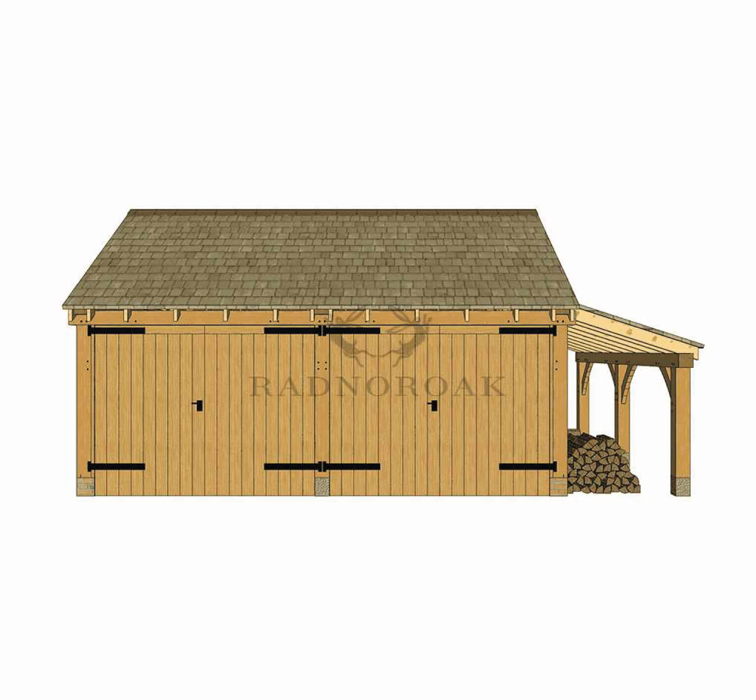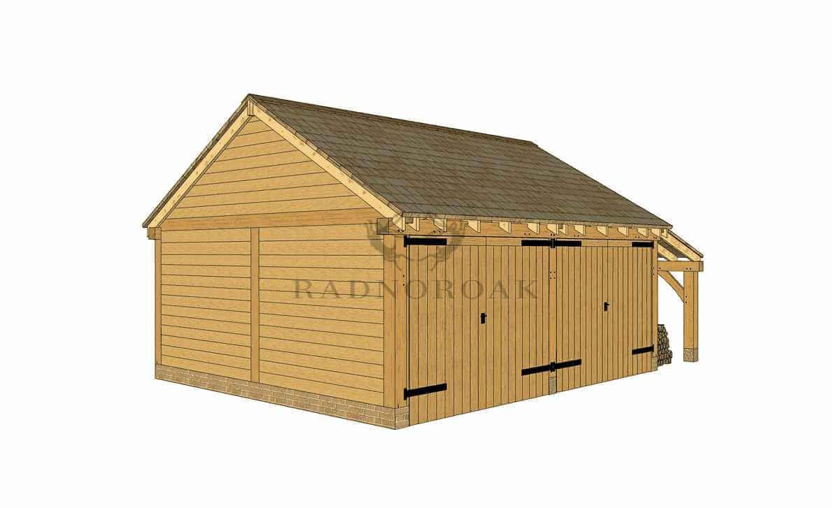 THE WALTON: 2 BAY OAK FRAMED GARAGE WITH DOUBLE DOORS & SIDE STORE