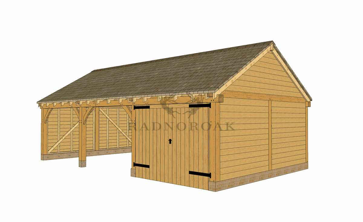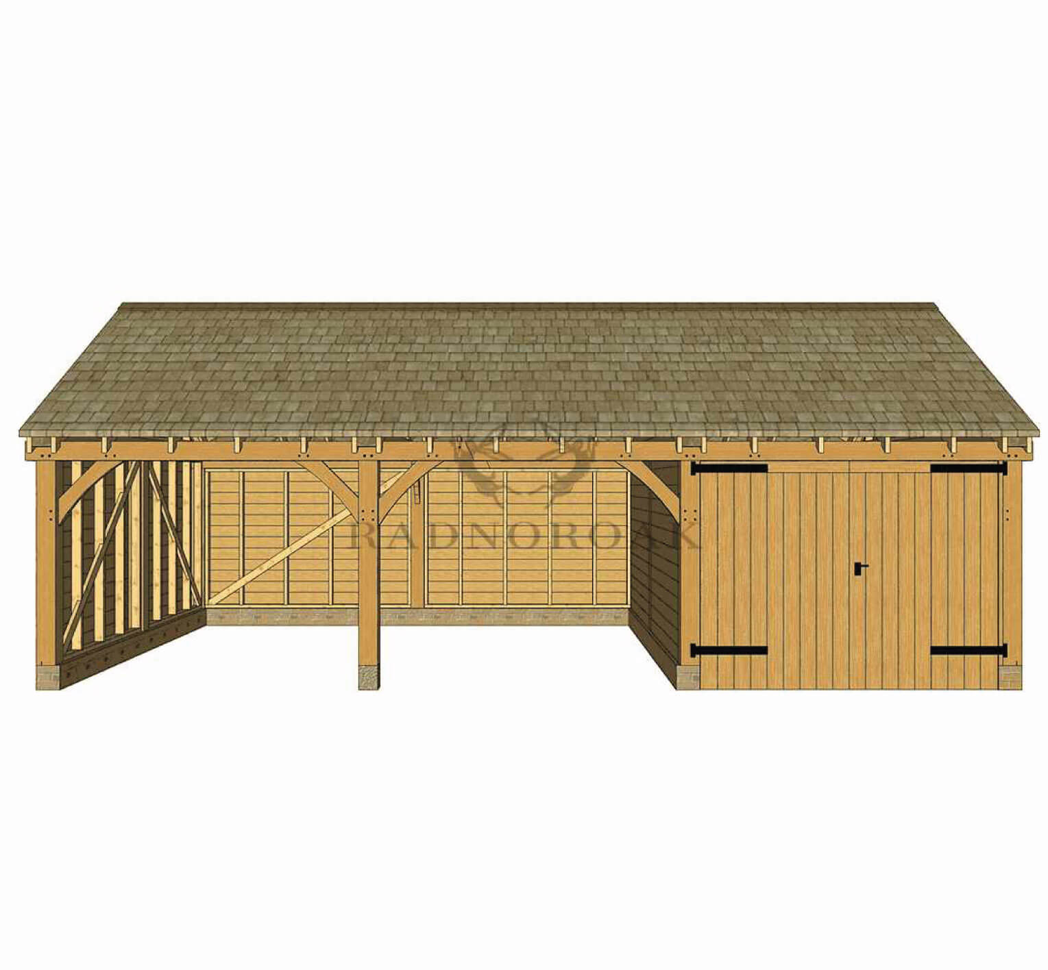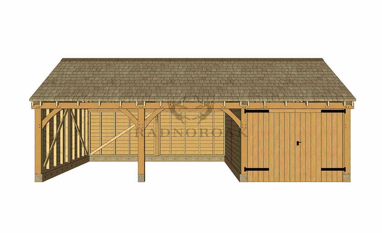 The Walton 3 Bay Oak Carport – WA3016 is a traditionally jointed oak-framed building designed with practicality in mind. It includes two open-fronted carports and one enclosed garage with doors. With an overall height of less than 4m, planning permission may not be required.