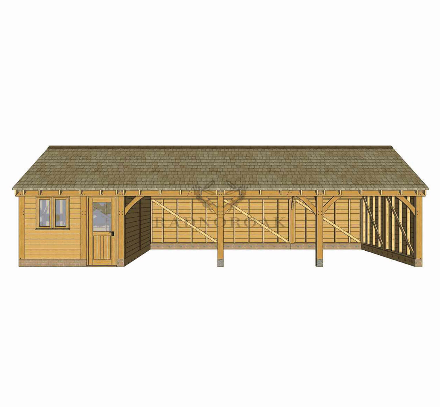 Discover the spaciousness and function of the 4 Bay Oak Carport & Workshop—WA4010 from Radnor Oak. Expertly crafted as an oak triple carport and a single workshop, it offers a unique blend of style, adaptability and value. With potentially no need for planning permission due to its lower than 4m height, it stands as an attractive addition to your property.