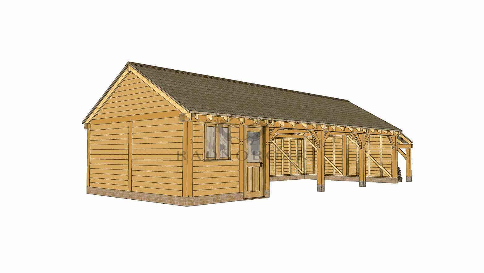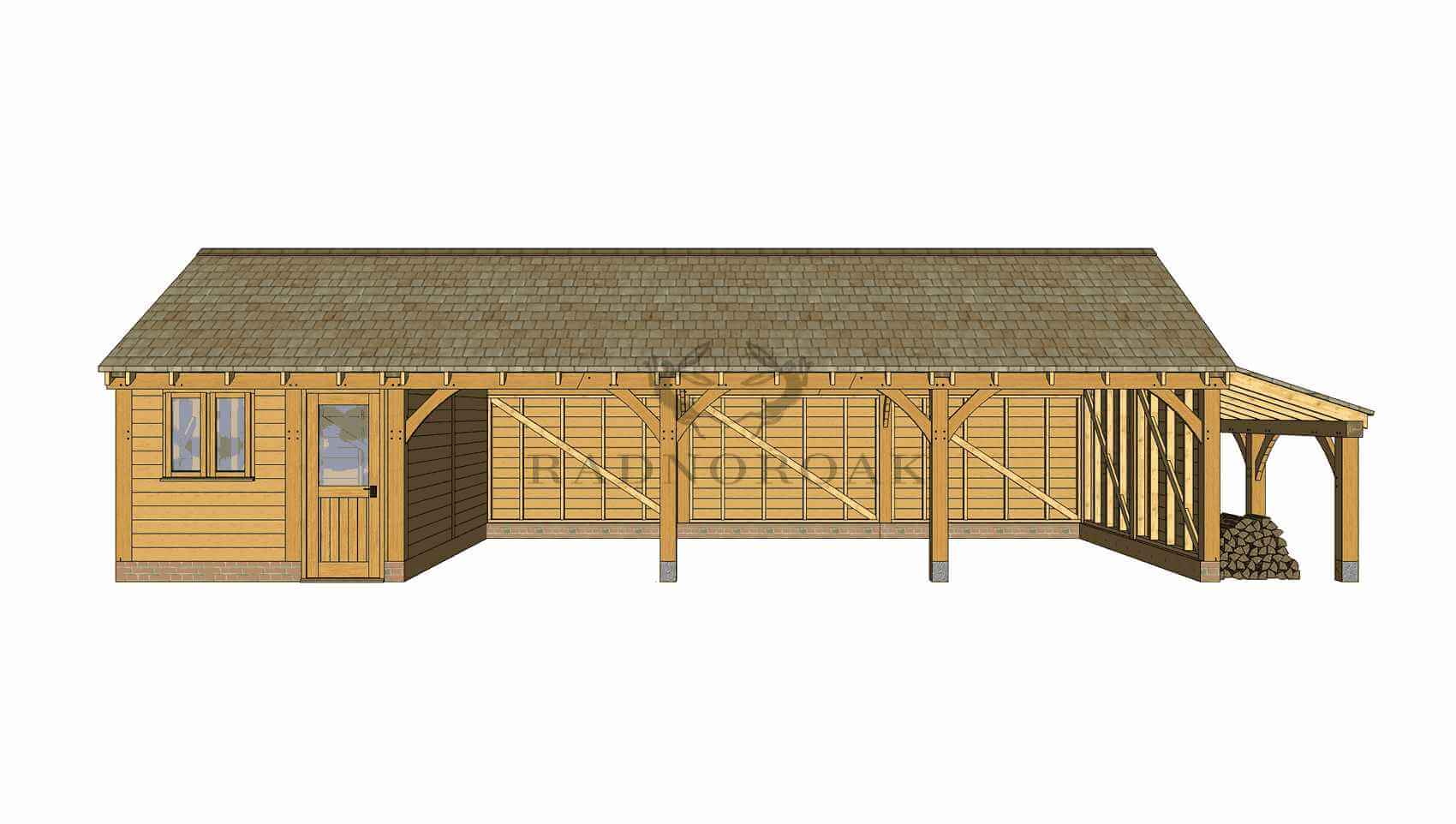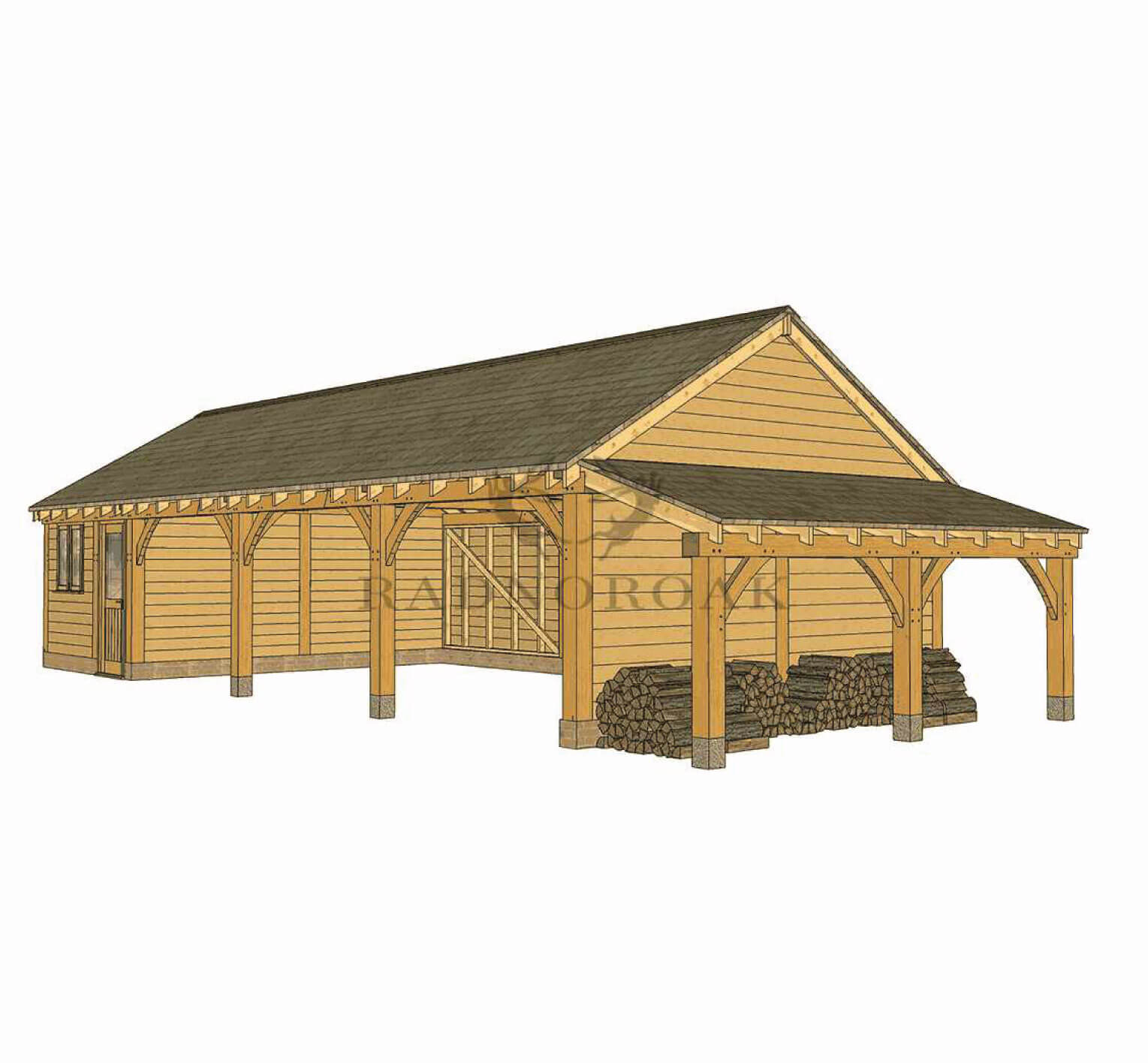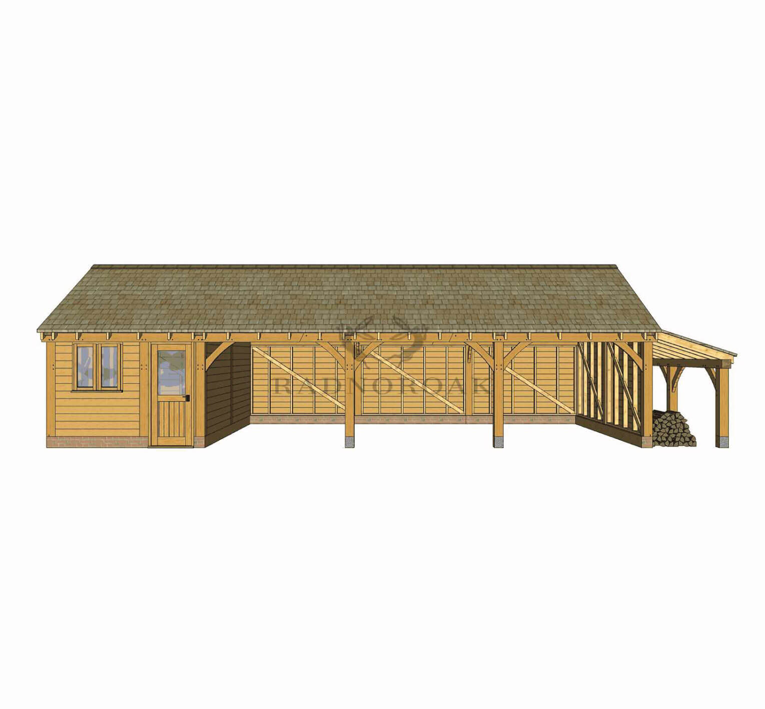 The Walton 4 Bay Oak Garage – WA4011 is a versatile oak-framed building that combines a triple carport, a single enclosed workshop, and an integrated log store. The log store can be positioned on either the left or right side, providing flexibility to suit your site layout.